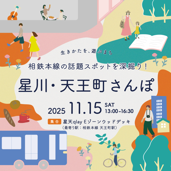 散歩にピッタリなシーズンで11月。星天qlayのお店やスタッフの方々を訪ねながら、星川・天王町のお気に入りスポットを見つける、まち歩きを実施します!「これを機に行ってみたい」「もっとまちを知りたい」そんな方へ、自分なりの歩きかた・暮らしかた・遊びかたを探すきっかけをお届けします。まち歩きのあとは、撮影した写真を使ってコラージュ制作を行うワークショップも!事前のご予約にてご参加ください。