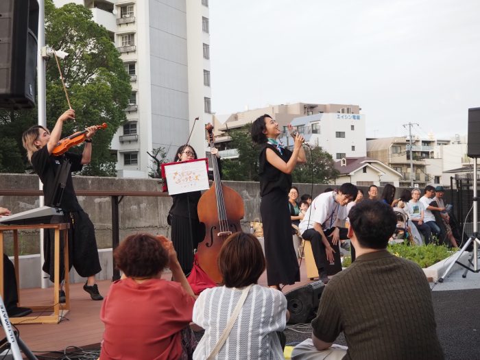Eゾーンのウッドデッキでは、昼から夜にかけて音楽ライブを開催。