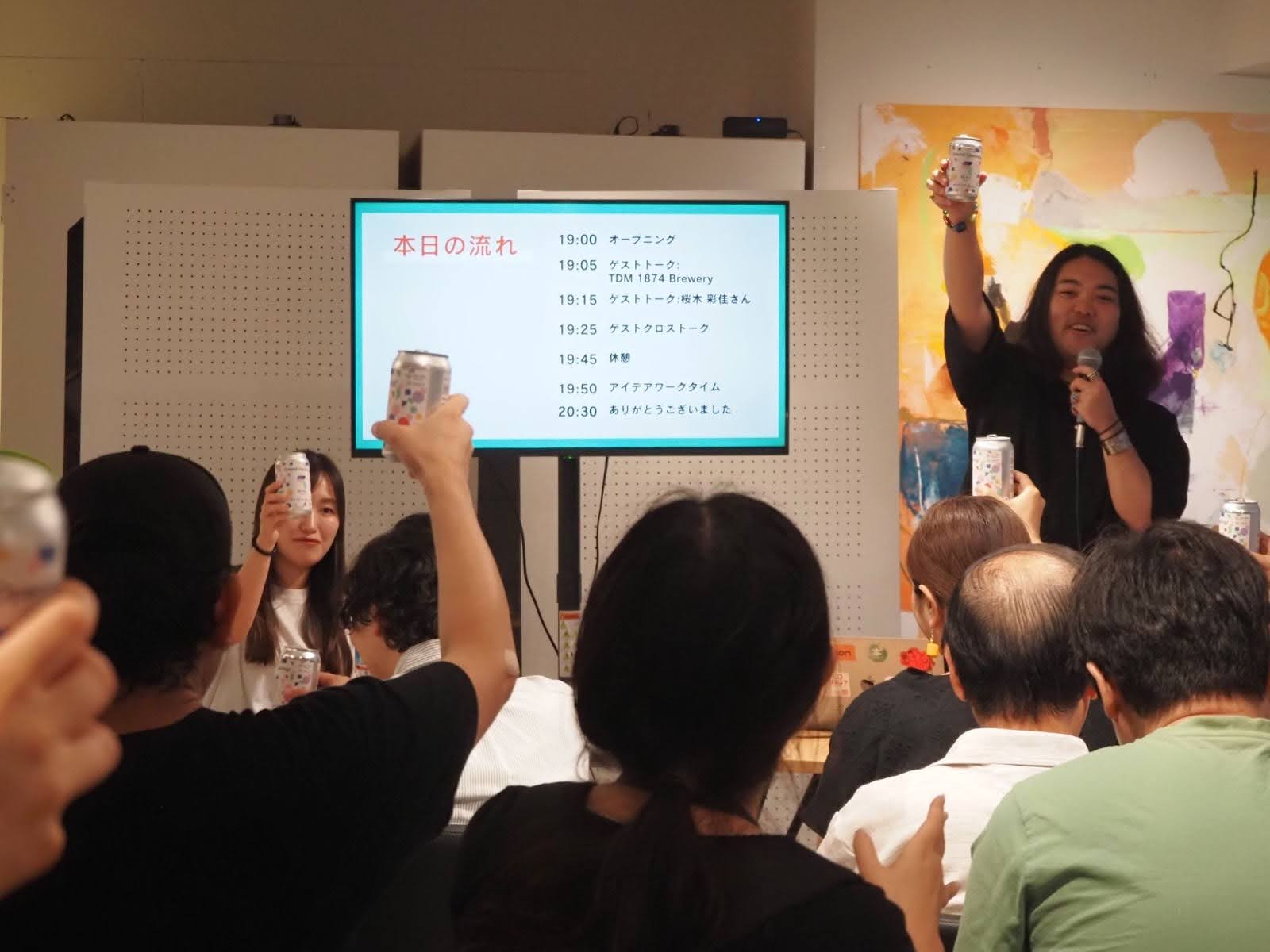 イベントは、TDM 1874 Breweryとコラボして作成した星天qlayオリジナルラベルのクラフトビールでの乾杯からスタート。お仕事を終えて集まった皆さんの「乾杯!」のお声で、場の雰囲気は一気に和やかに。そして、トークセッションがスタートしました。