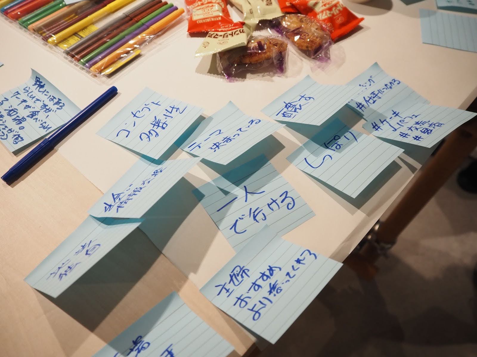 トークセッションの後は、参加者のみなさんのお酒にまつわる思い出やアイディアをシェアする時間に。チームごとのテーブルには、お菓子も用意され、ビールを片手に和気あいあいとした雰囲気でグループワークが進んでいきました。