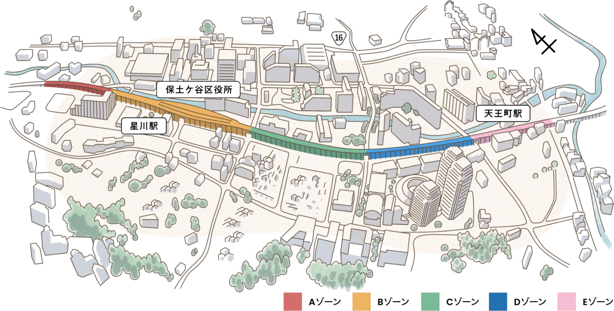 星天qlayは“生きかたを、遊ぶまち”をコンセプトに、全長約1.4キロの空間をA~Eゾーンの5つに分けて順次開発を進めています。